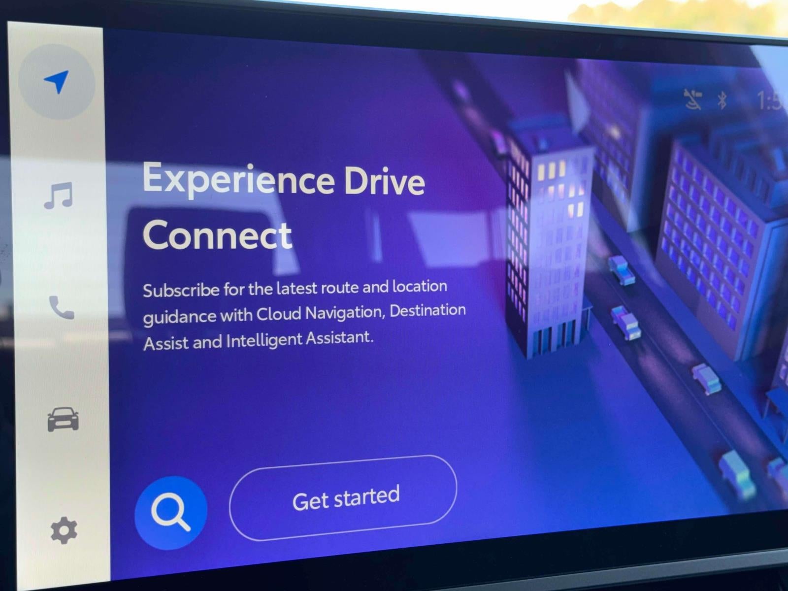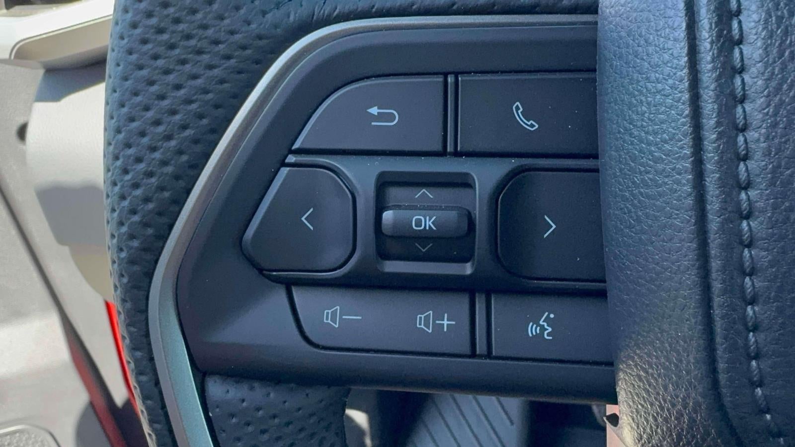 - Leather-wrapped manual tilt/telescopic steering wheel with phone, audio, display/infotainment, and Driver Assist controls