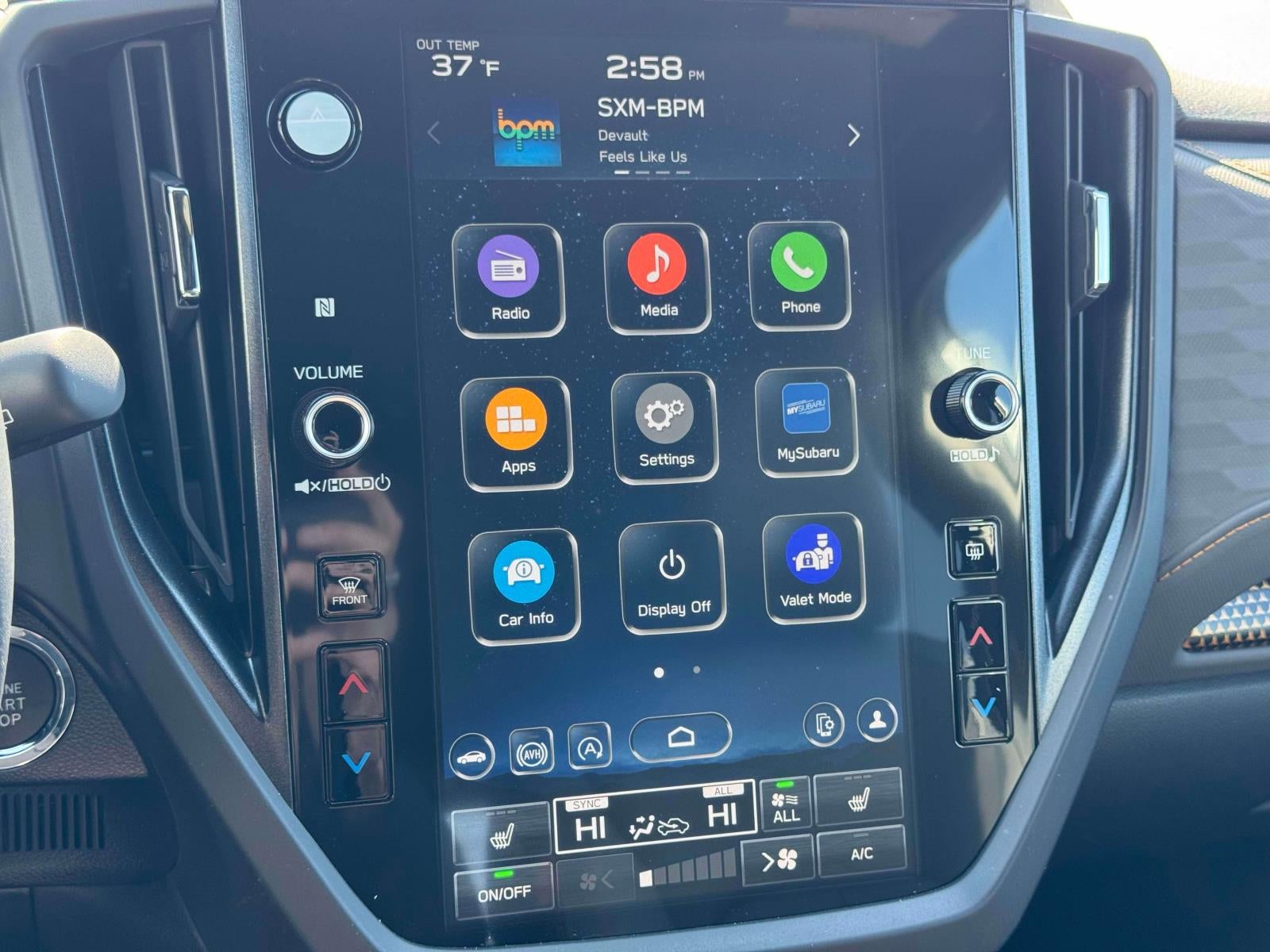- Radio: Subaru 11.6" Multimedia Plus System -inc: valet mode, integrated center information display, AM/FM stereo HD Radio, multi-touch gesture high resolution display screen, voice activated controls, Bluetooth® audio streaming and hands-free phone connectivity w/SMS text messaging (refer to Subaru.com for cellphone compatibility), iPod control capability, smartphone integration: Android Auto and Apple CarPlay w/full screen view and wireless connection, SiriusXM satellite radio w/360L (free 4-month trial subscription included), USB and Over The Air (OTA) audio system update, steering wheel controls, 6 speakers, 3.5mm auxiliary input jack and roof mounted audio and satellite antenna