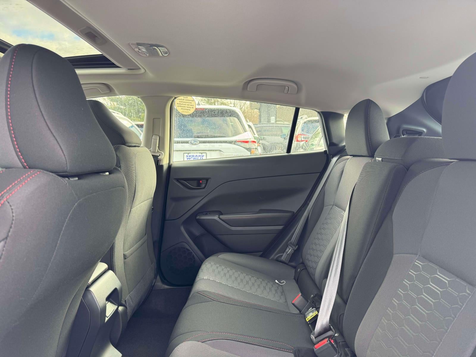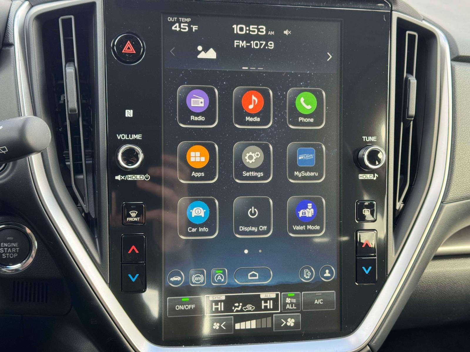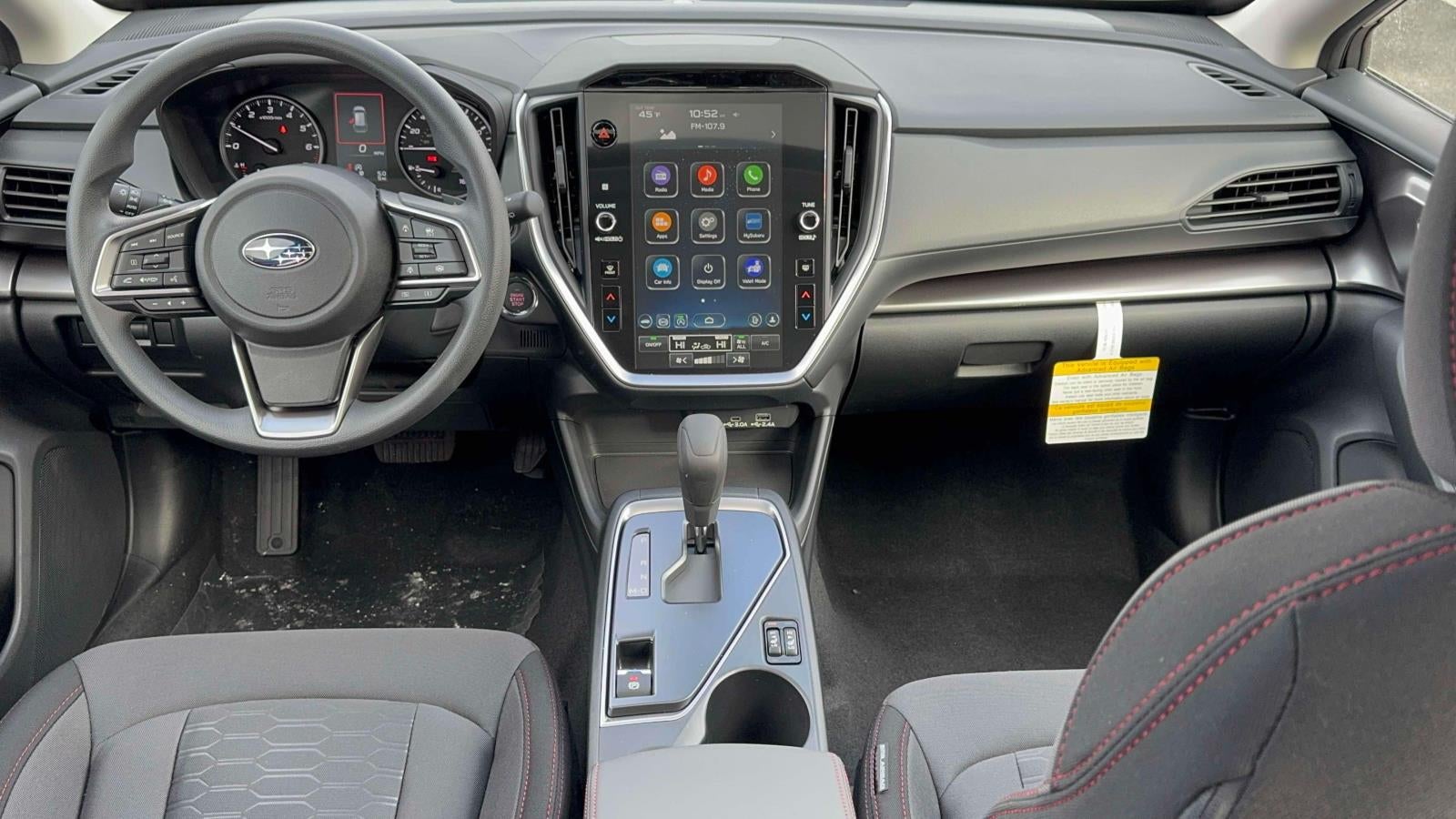 - Radio: Subaru 11.6" Multimedia Plus System -inc: valet mode, AM/FM stereo, HD Radio, multi-touch gesture high resolution display screen, voice activated controls, Bluetooth® audio streaming and hands-free phone connectivity, Bluetooth® hands-free SMS text messaging connectivity, iPod control capability, smartphone integration: wired and wireless Android Auto w/full screen view, wireless Apple CarPlay w/full screen view and wireless connection, USB and Over The Air (OTA) audio system update, audio system and Bluetooth® steering wheel control switches, 6 speakers (2 dash panel tweeter, 2 front door, 2 rear door), illuminated 3.5mm auxiliary input jack, illuminated USB A and C input charge ports, roof mounted satellite and connected services, roof mounted black antenna, connected services operation indicator, SOS emergency assistance (red button) and ehanced roadside assistance (blue i-button)