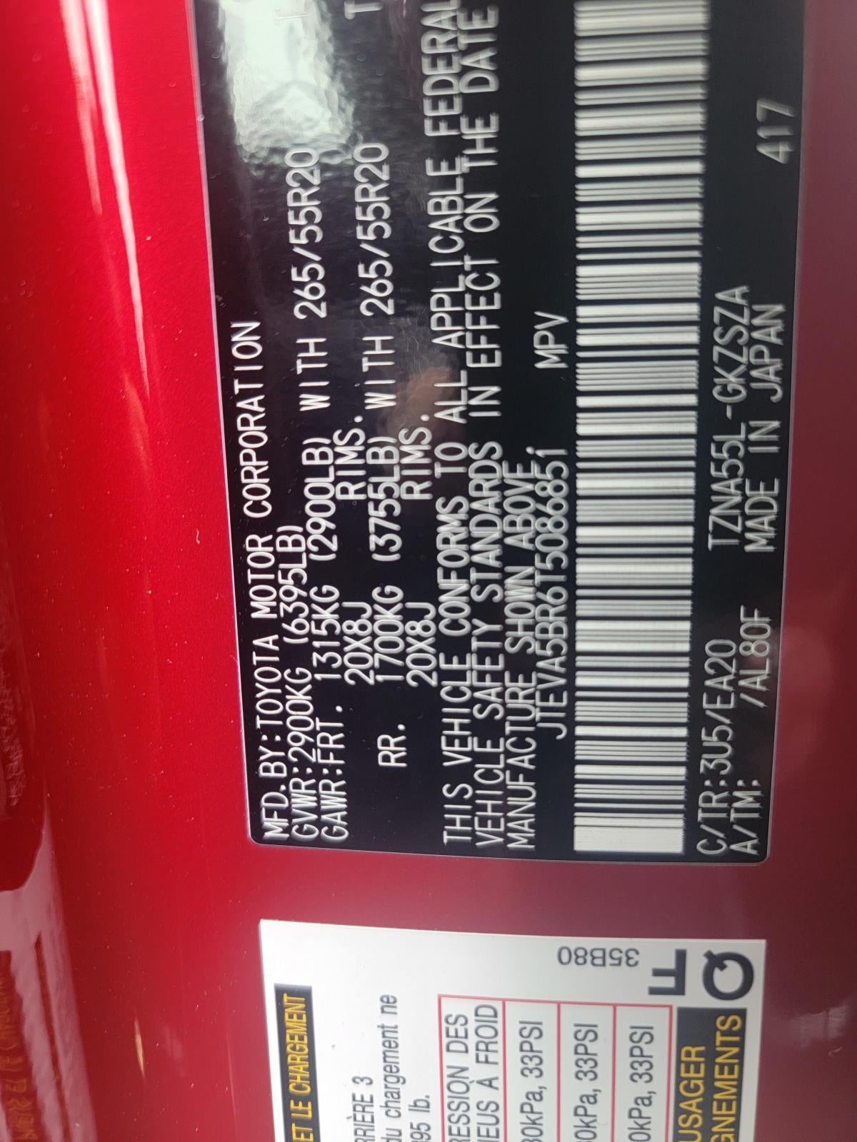 - Front Tire Size: P265/55SR20