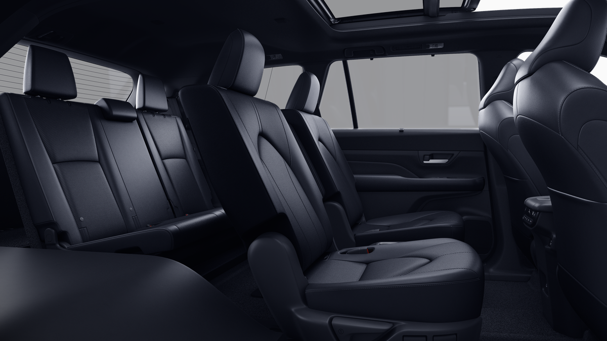 - 7-passenger seating with second-row fold-down captain's chairs and fold-down inboard armrests, adjustable headrests and two cup holders mounted on the floor; and 60/40 split, fold-down third-row seats with sliding headrests and recline function