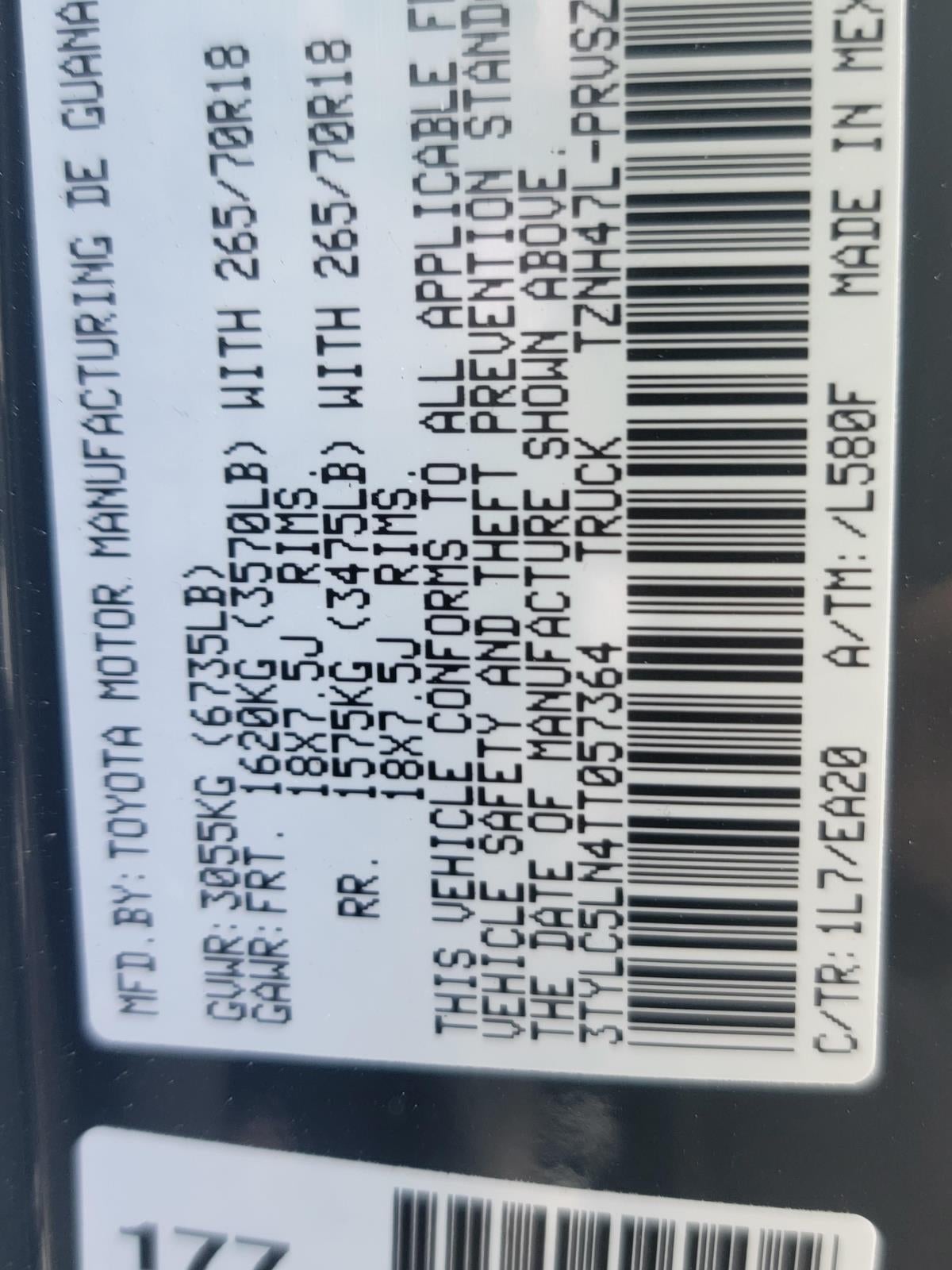 - Front Tire Size: P265/70TR18