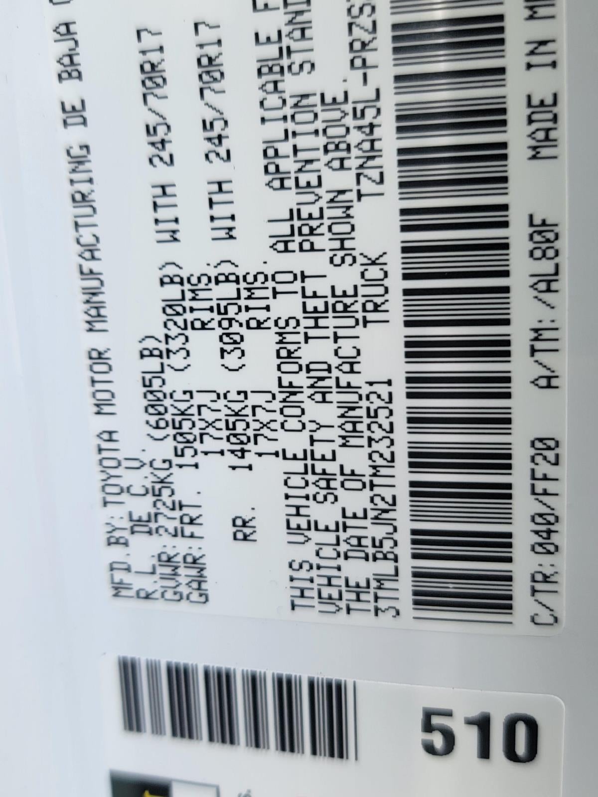 - Vehicle Name: Toyota Tacoma 4WD