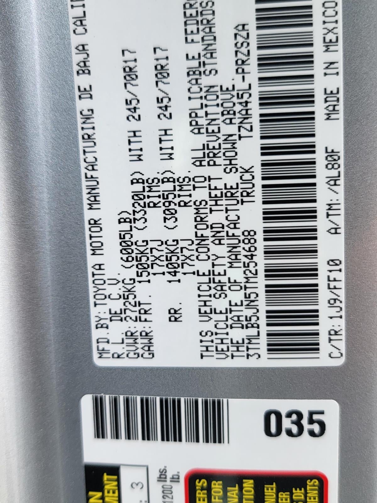 - Vehicle Name: Toyota Tacoma 4WD