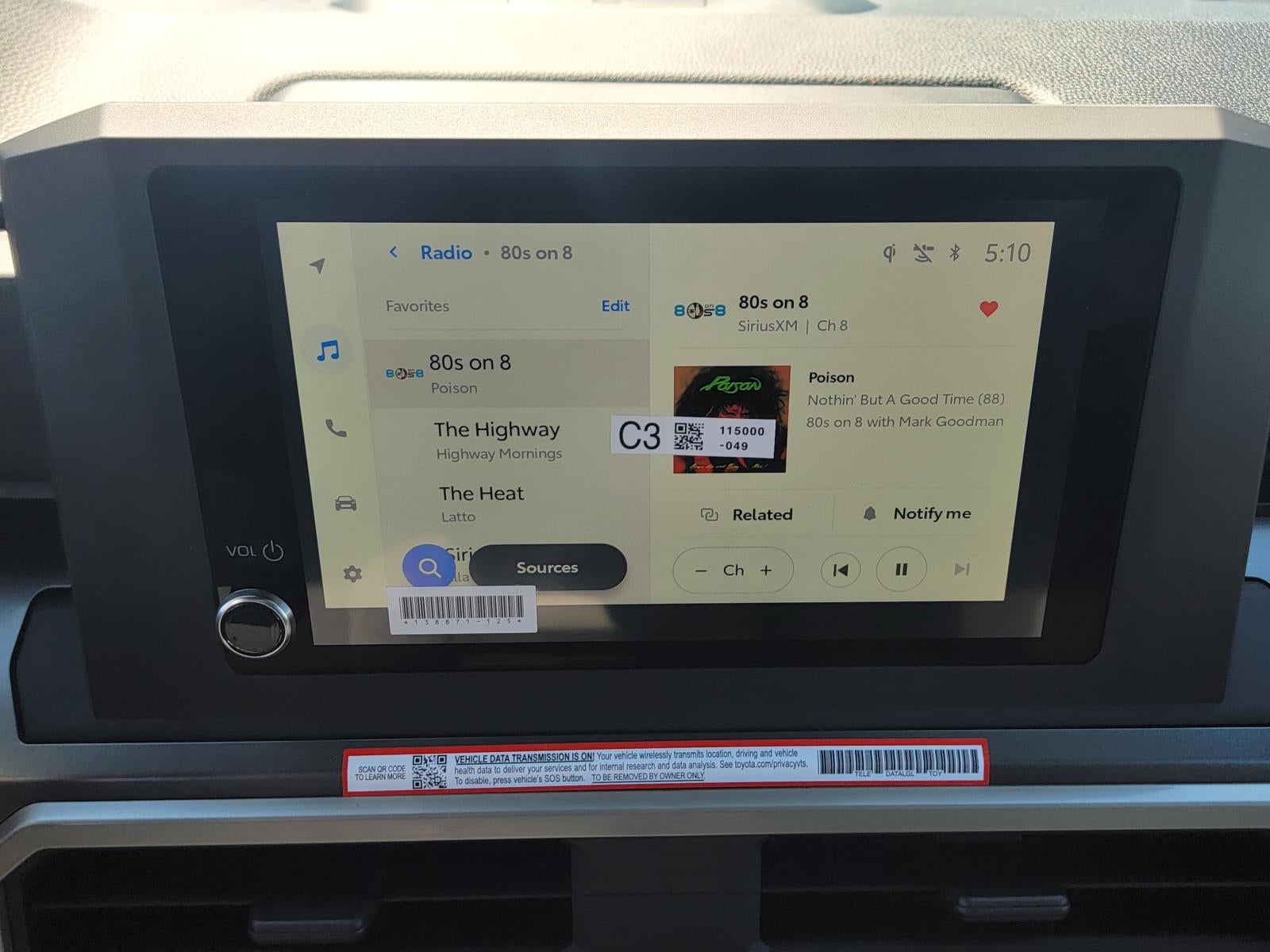 - 8-in. Toyota Audio Multimedia display with 6-speaker audio system, wireless Apple CarPlay® [carplay_wireless] & Android Auto™ [android_auto_wireless] compatibility, SiriusXM® 3-month trial subscription. [siriusxm] See toyota.com/connected-services for details.