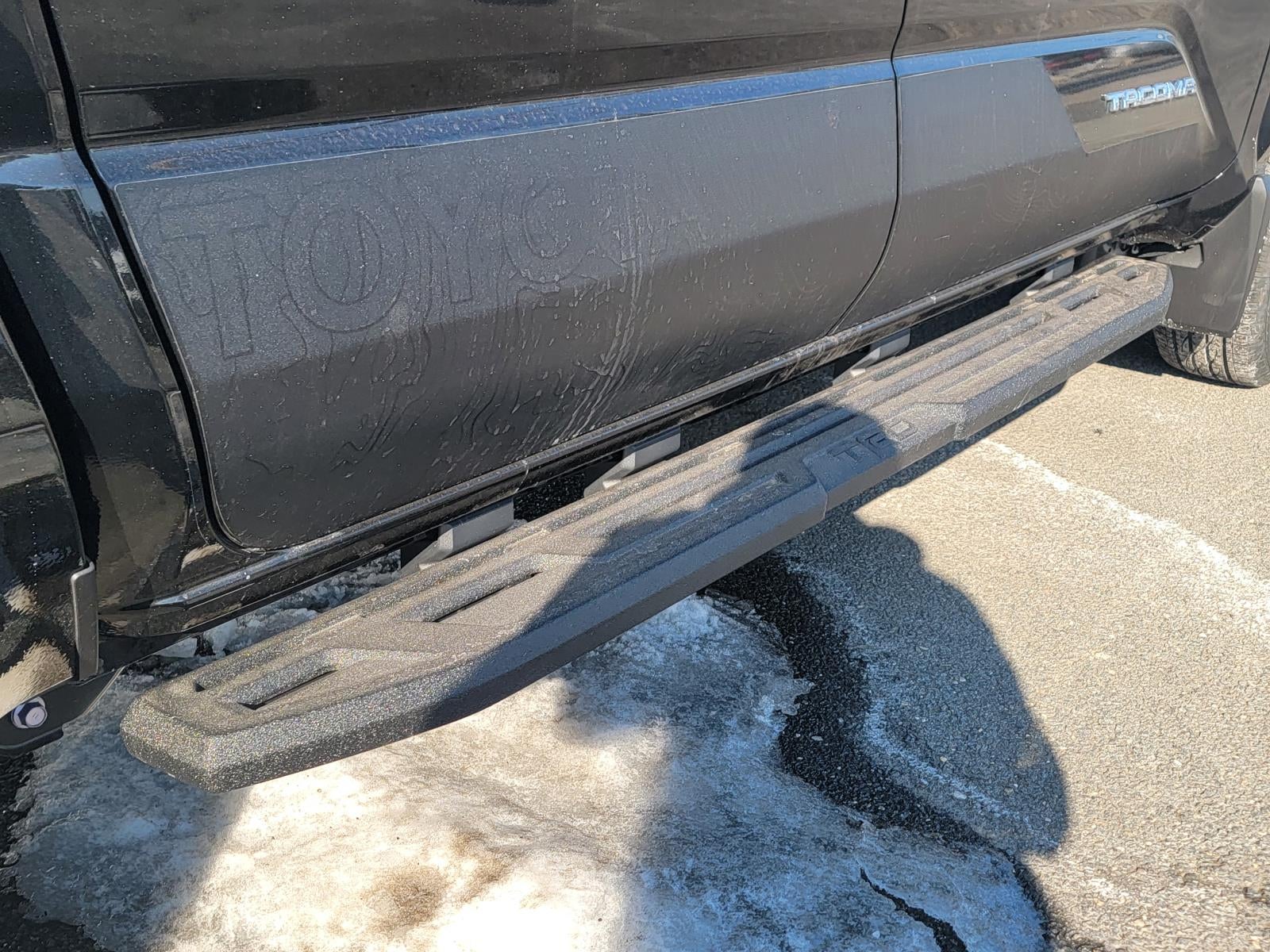 - Step up and step in. These sturdy running boards with Tacoma logo give you easier access to your vehicle.