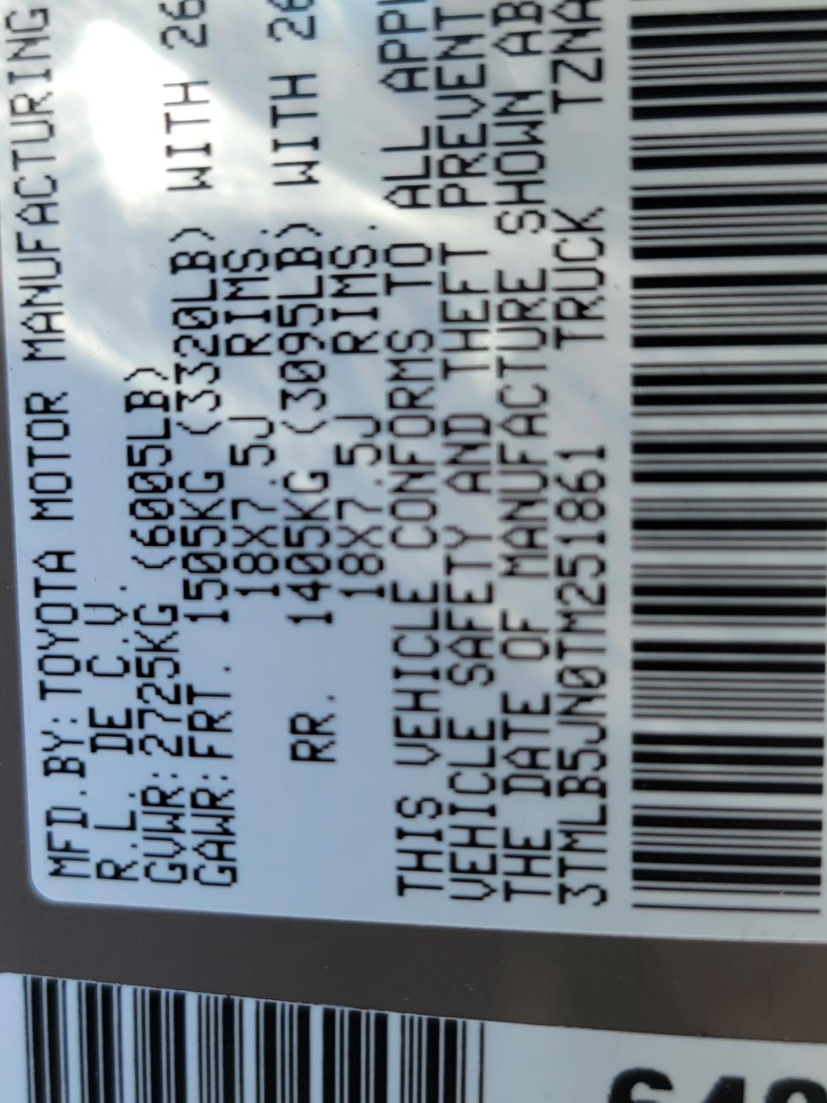 - Vehicle Name: Toyota Tacoma 4WD
