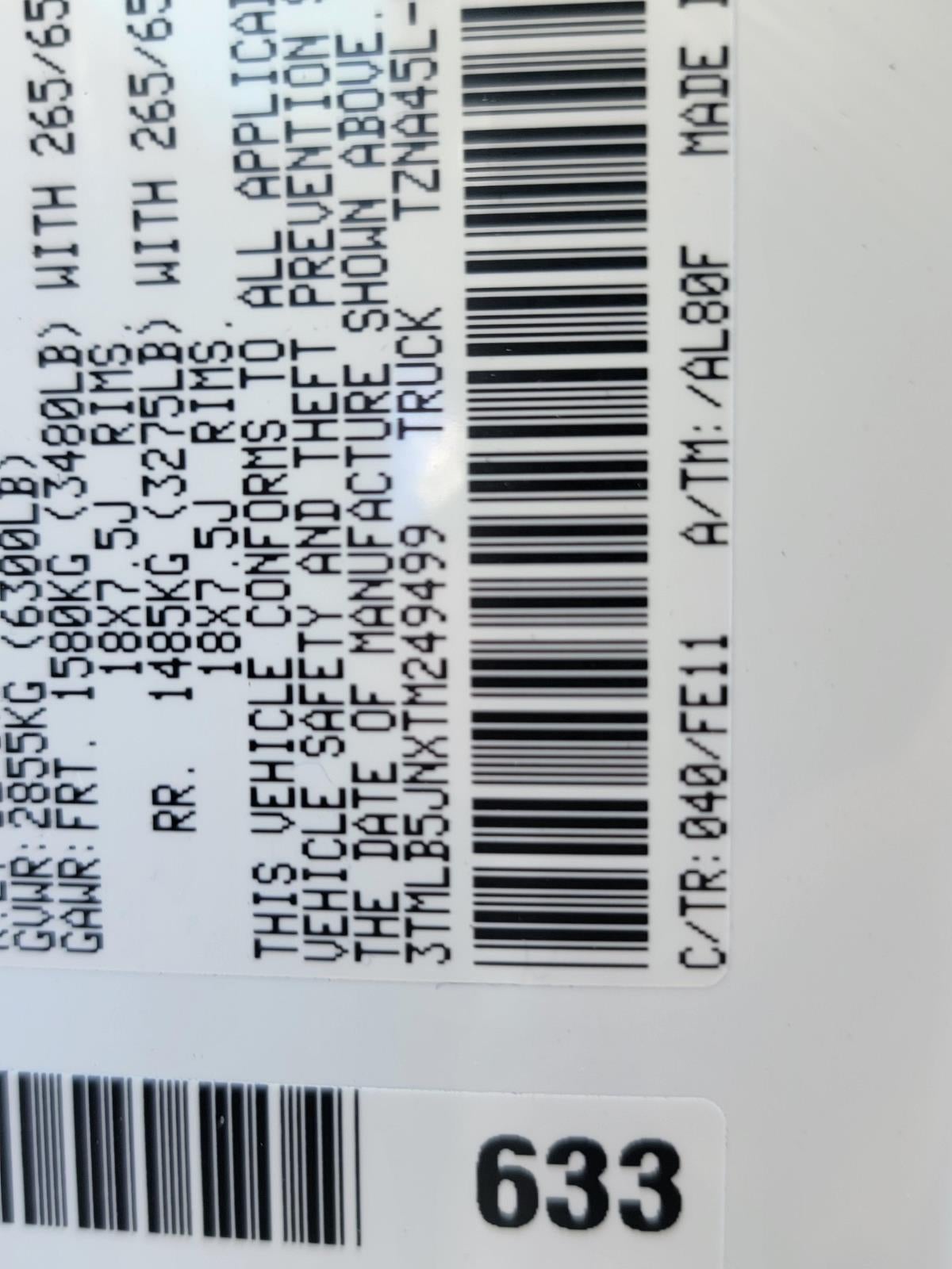 - Front Tire Size: P265/65TR18