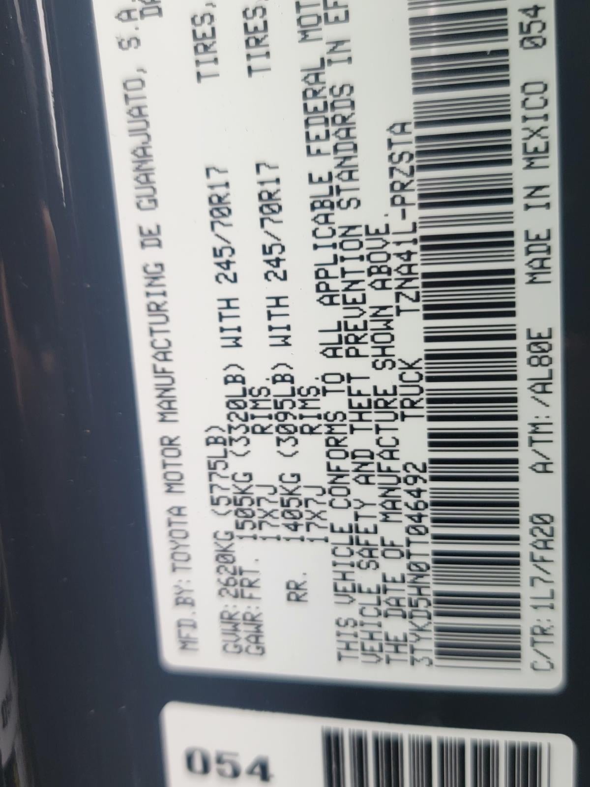 - Vehicle Name: Toyota Tacoma 2WD