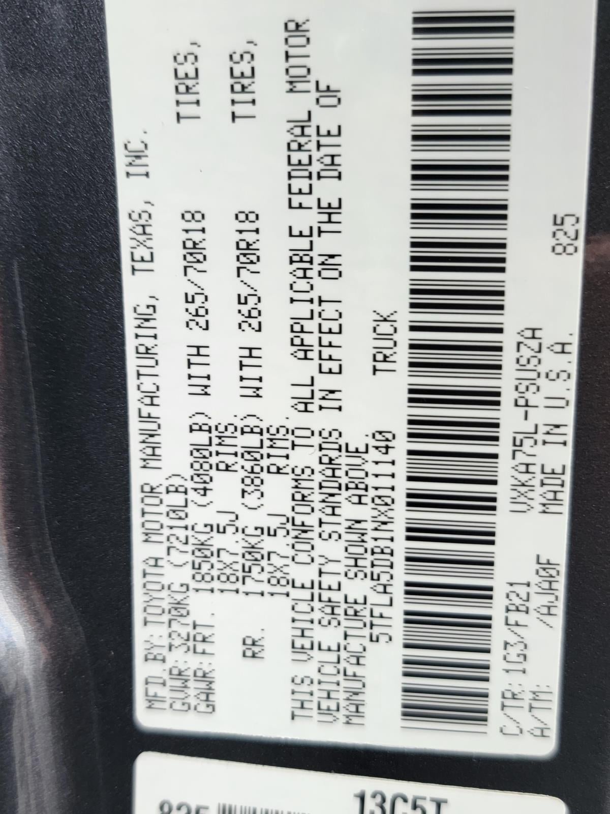 - Vehicle Name: Toyota Tundra 4WD