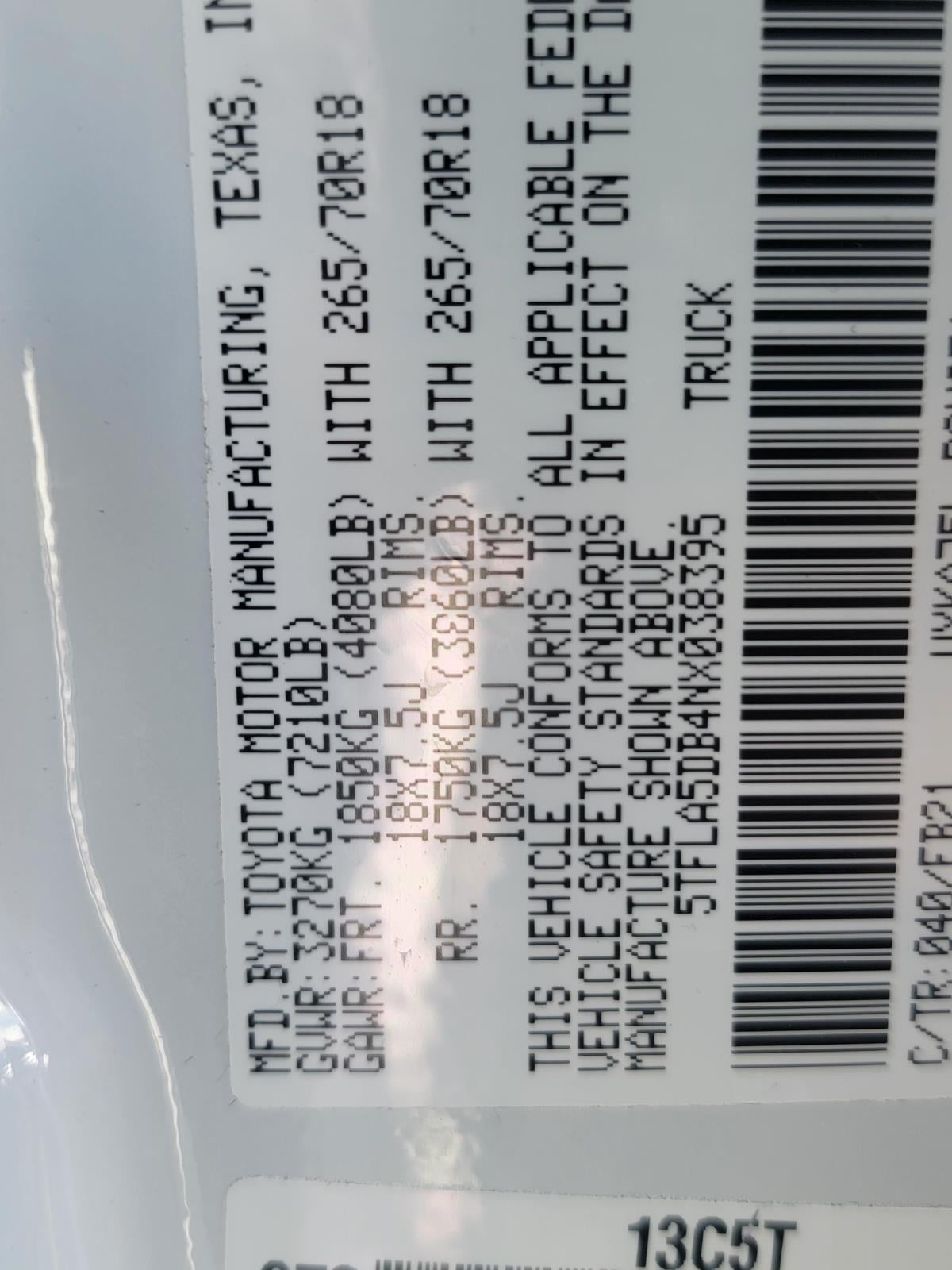 - Front Tire Size: P265/70TR18
