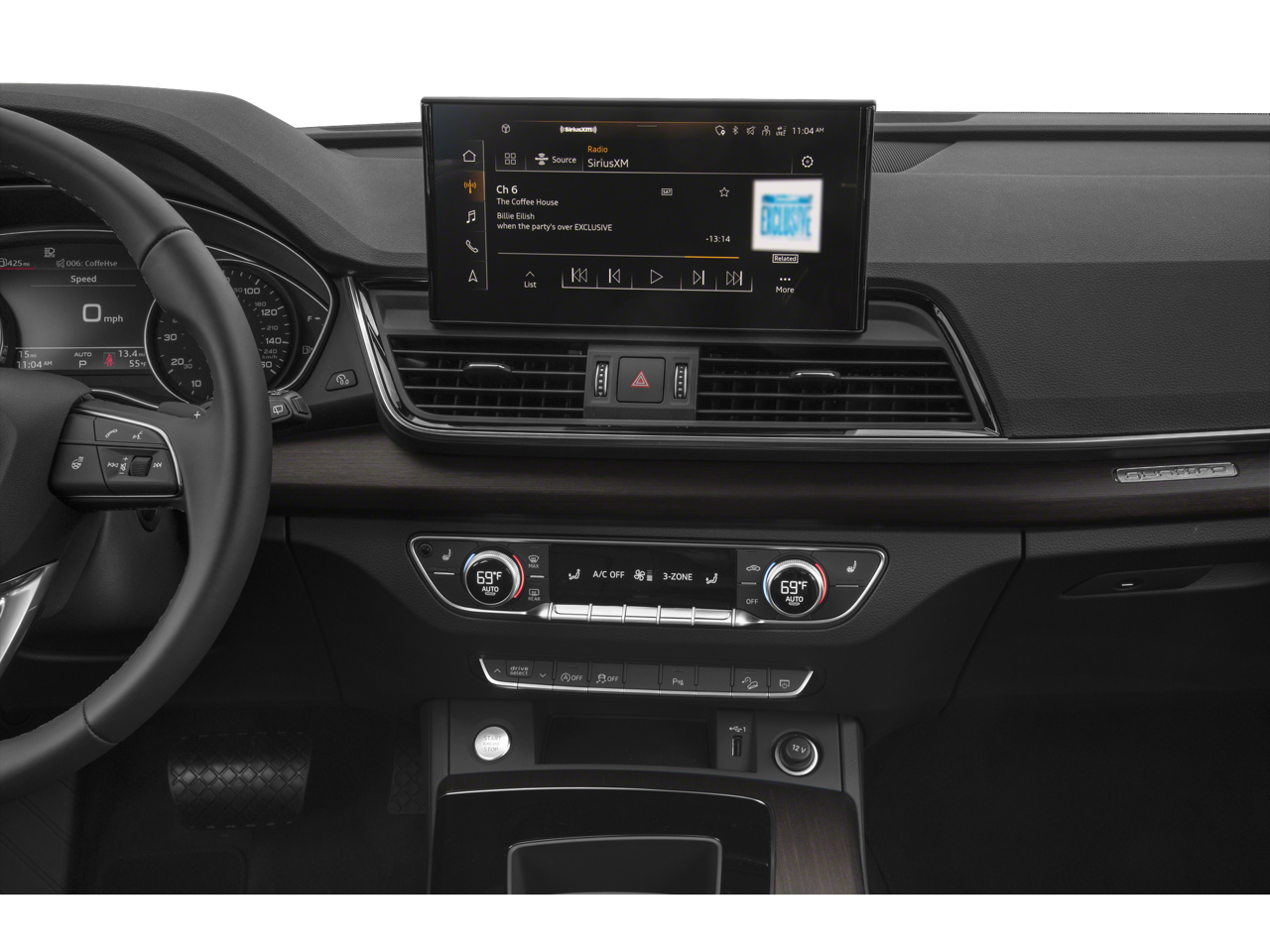 - Radio: Audi Sound System -inc: Audi connect CARE (limited time subscription), Audi smartphone interface w/wireless Apple CarPlay, MMI touch display w/10.1" center screen, preparation for mobile phone (Bluetooth®) and 2 rear USB charge ports
