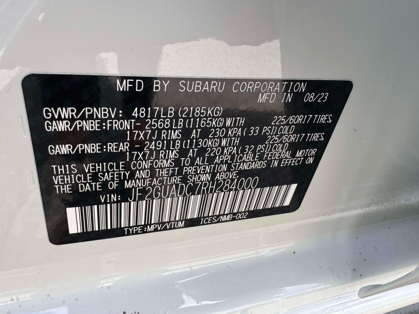 - Vehicle Name: Subaru Crosstrek